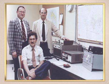 Left: Rod Blocksome, K0DAS, presents KWM-380 Serial number ONE #1 to the late senator Barry Goldwater, K7UGA, at the 1979 ARRL Mid. West Division Convention in Cedar Rapids. Barry was a long-time Collins user. ![]() Gather at main plant in Cedar Rapids in 1983: Mr. Jerry Vonderheide, W0NGL, Design Team Manager of "Project Casper - HF/KWM-380", Mr. Rod Blocksome, K0DAS, and Mr. Tom Vinson, WA9YZN (now NY0V), Fathers of the Collins Radio Club station. Back to Menu |